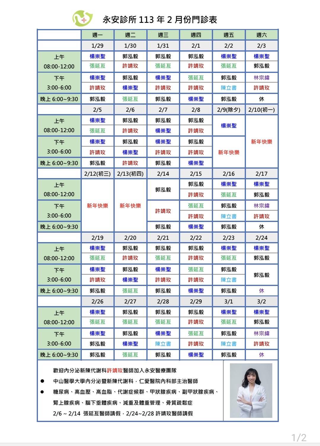 | 113年2月門診表