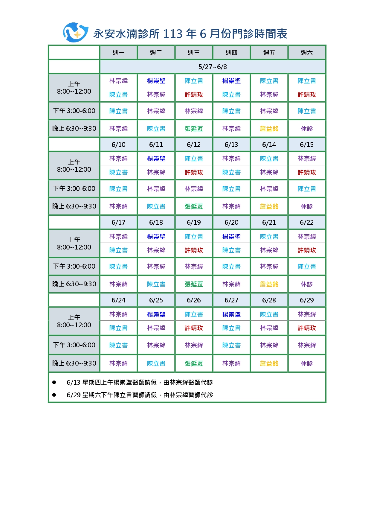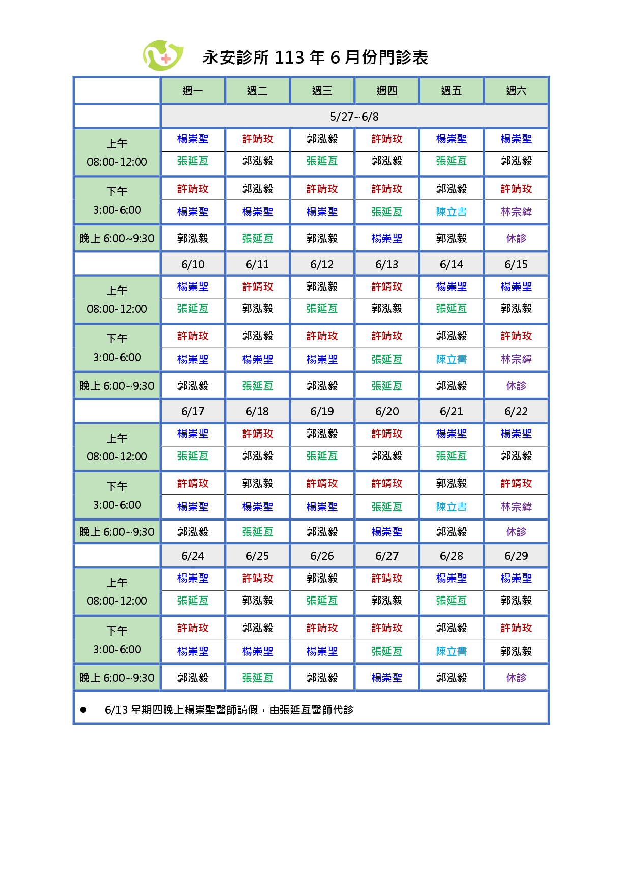 | 113年6月門診表